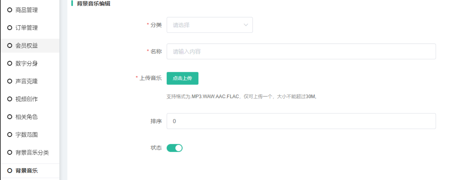 可上传音频文件到平台,音乐可用于生成视频的背景音乐